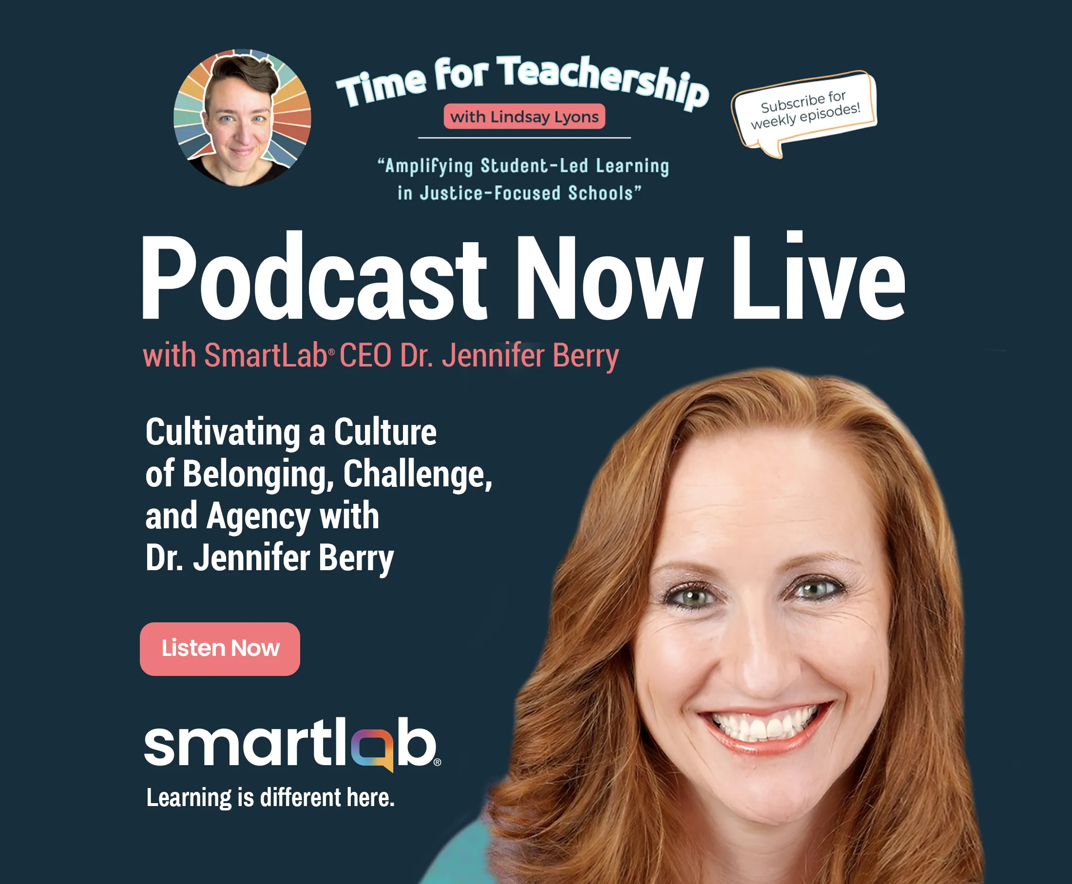In this episode of Time for Teachership, host Lindsay Lyons is joined by Dr. Jennifer Berry, CEO of SmartLab, to explore how educators can cultivate belonging, challenge, and agency in every learning environment.